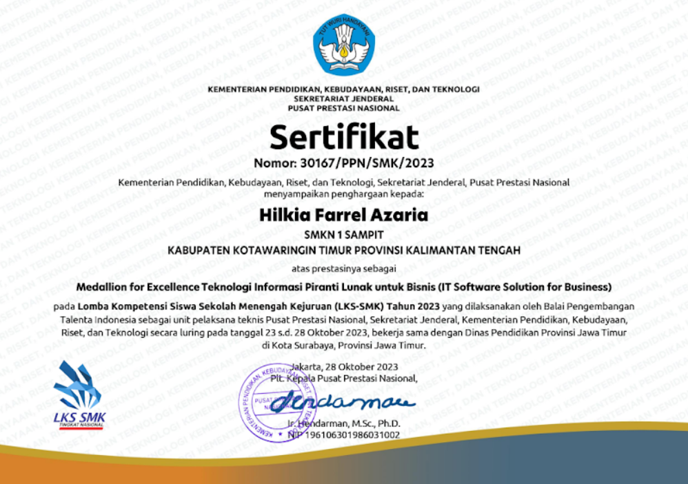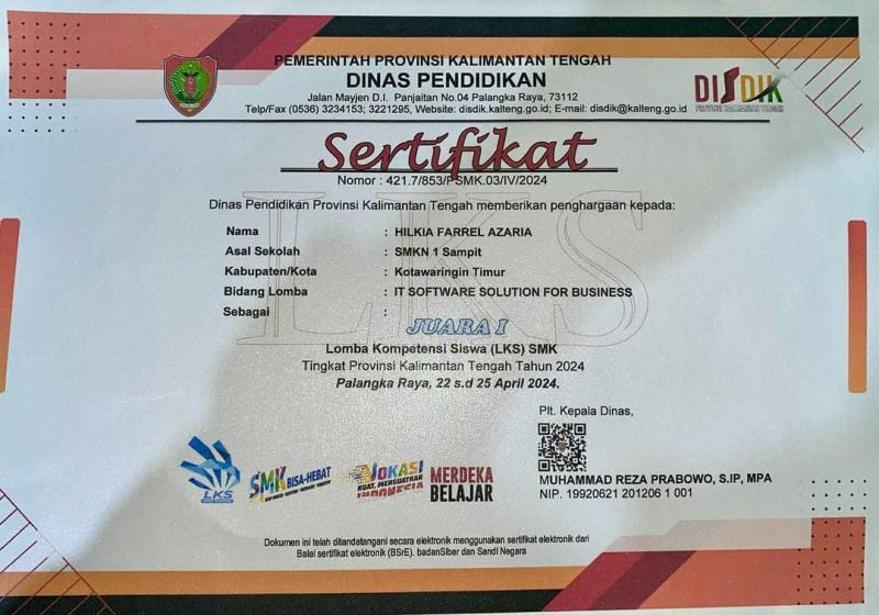 I am a student at SMK 1 Sampit. In 2022 I chose to major in software engineering. In the software engineering major, I was taught how to organize data and so on